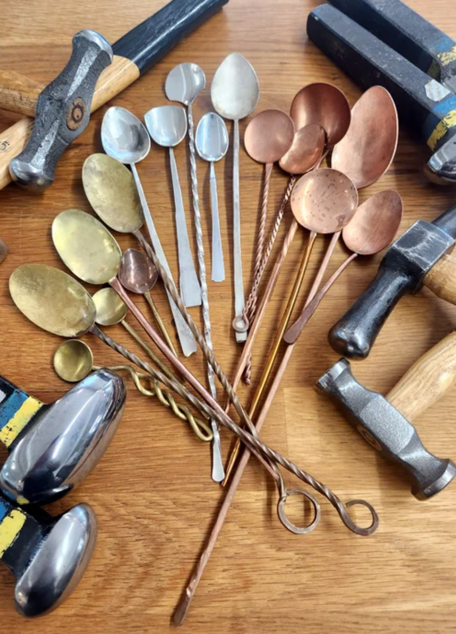 In this 5 session course you will learn how to make your very own silver dessert spoon. Two different approaches will be taught. We will begin with designing the basic shape and applying one method by sawing the piece from heavy sheet metal, and the other by forging bar stock. Through these basic introductions to simple forming and forging a spoon will be created. Design embellishments such as carving with files and stamping as well as finishing and polishing will be covered.